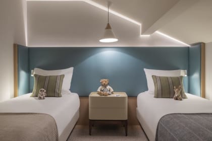 La chambre peut accueillir 2 personnes maximum, 2 lits single